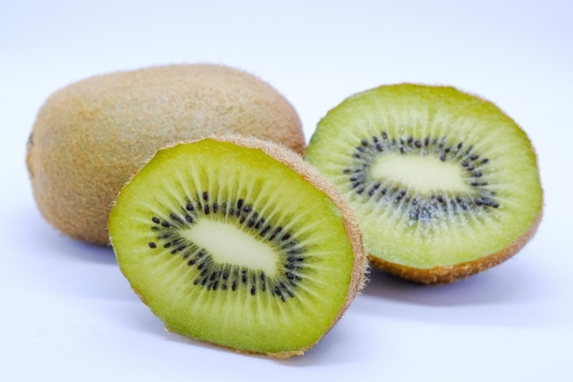 ●キウイフルーツは栄養素の宝庫といえる果物です。ビタミンCは69mg/100gと豊富で、1日の所要量は100mgとされているので、1~2個で十分な量が摂取できます。さらに、ビタミンEを1.3mg/100g含み、200g摂取すると1日の所要量の26~33%も満たすことができます。キウイフルーツは、心臓病の予防に関係する葉酸を(36μg/100g)多く含んでいます。そのため、キウイフルーツは、たばこを吸う人、酒を飲む方、妊婦、肌の健康が気になる人などに最適な果物です。