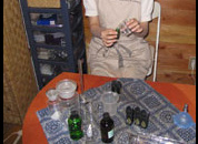 専任スタッフがブレンドを行い、オリジナルブレンドオイルやバスソルト、サシェなどの製造を行います。